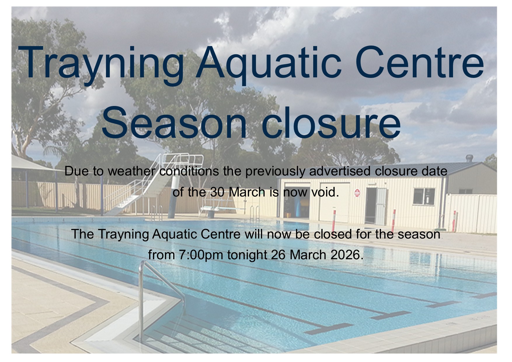 Trayning Aquatic Centre Seasonal Closure